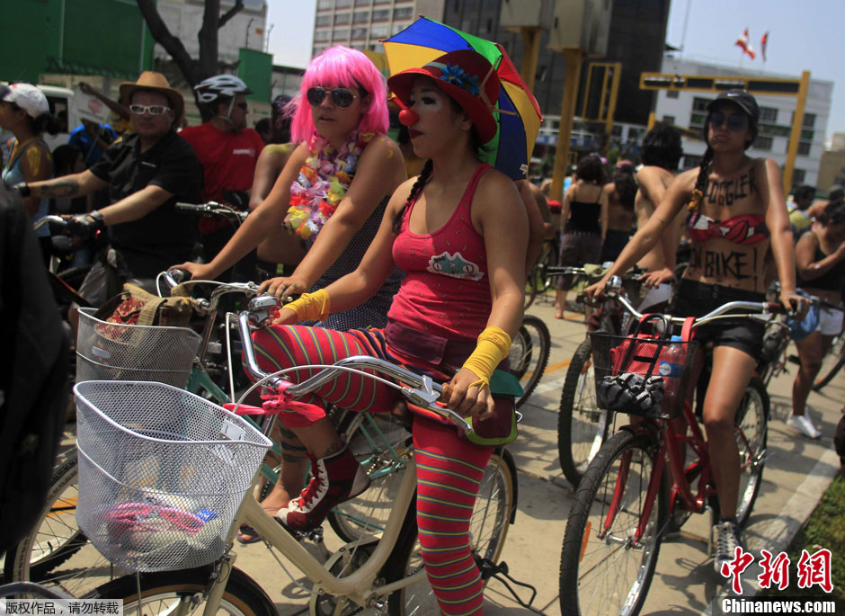 南美多国响应裸体骑车活动 呼吁绿色出行
