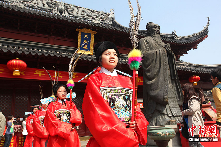 西安百人着汉服诵国学经典祭拜孔子