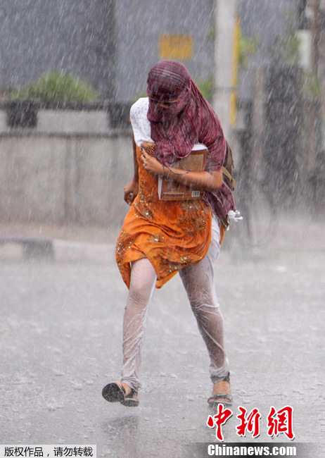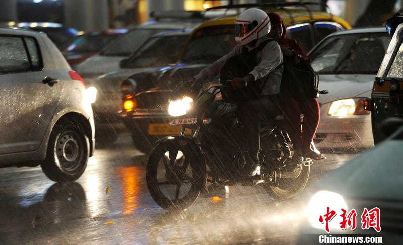 2012年4月10日,印度新德里突遭暴风雨袭击,道路两旁的大树被连根拔起。
