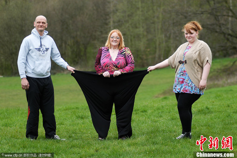 2012年4月10日消息,英国曼彻斯特,Alysson Wilson是两个孩子的妈妈,体重最重时达267公斤,通过手术后成功减掉190公斤赘肉,打破了英国减肥纪录。图为成功减掉190公斤赘肉的Alysson Wilson(左)和减肥前的Alysson Wilson(右)。图片来源:CFP视觉中国