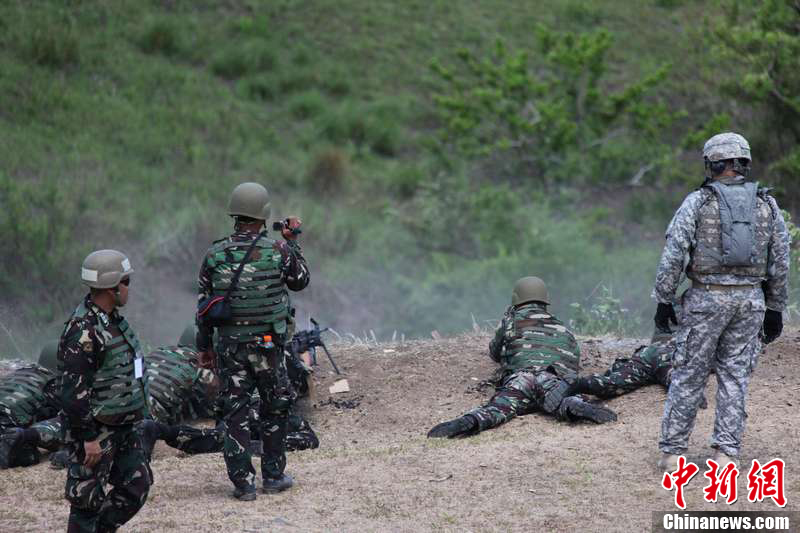 美菲联合军演:美军演练灭火