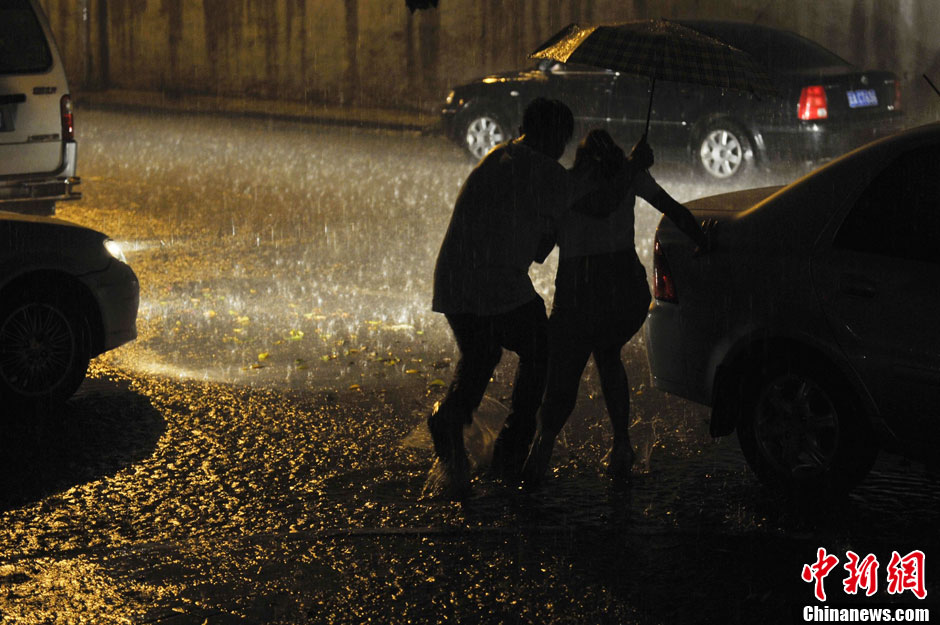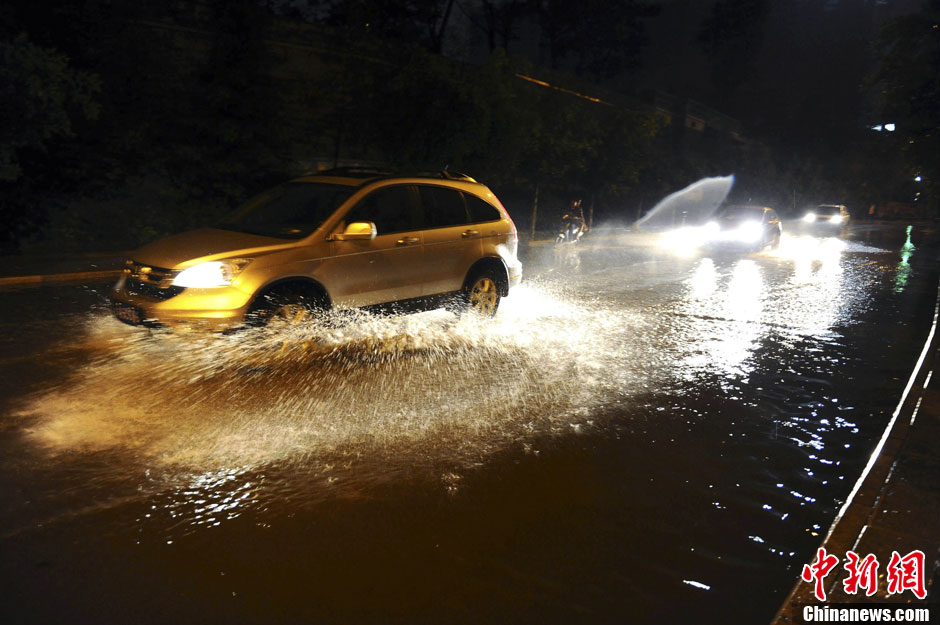 昆明市区突降暴雨 道路积水汽车熄火