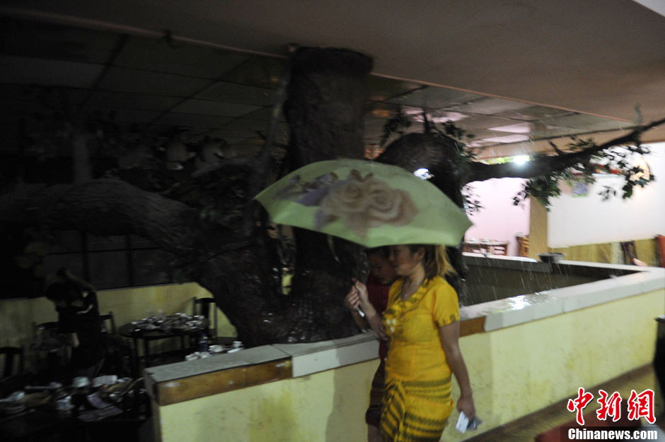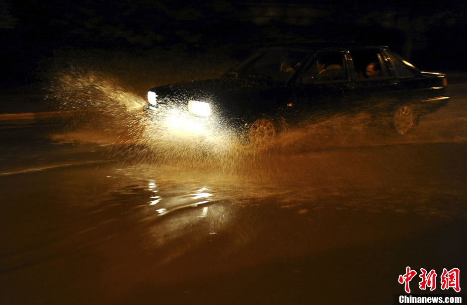 5月24日傍晚,昆明市区突降暴雨,为高温天气降了点温,近期昆明气温直逼30℃。图为路面积水太深,一辆汽车熄火。中新社发 刘冉阳 摄