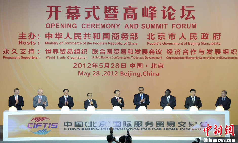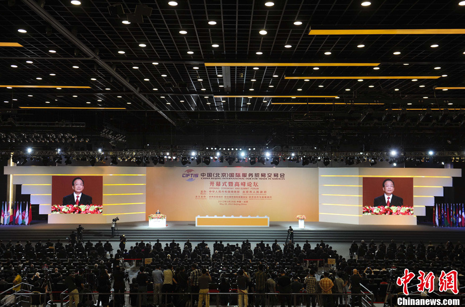 5月28日,中国(北京)国际服务贸易交易会开幕式在北京国家会议中心开幕,中国国务院总理温家宝出席开幕式。中新社发 富田 摄