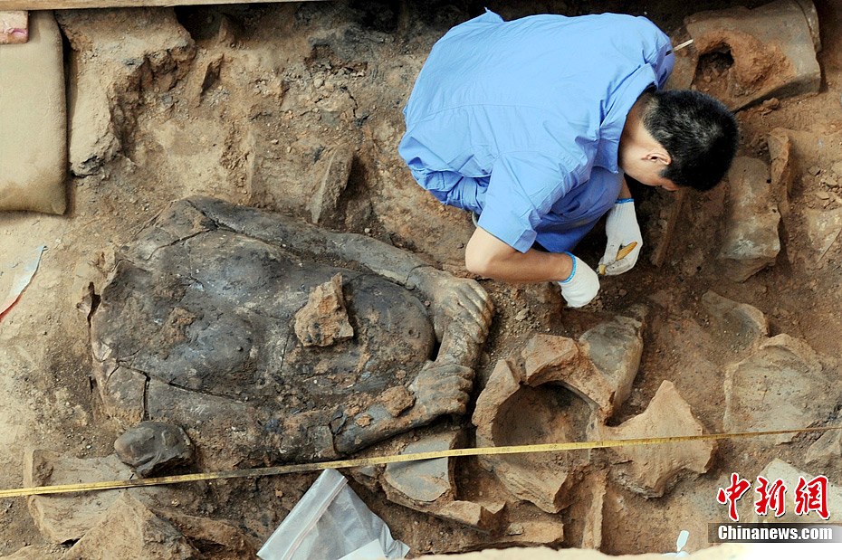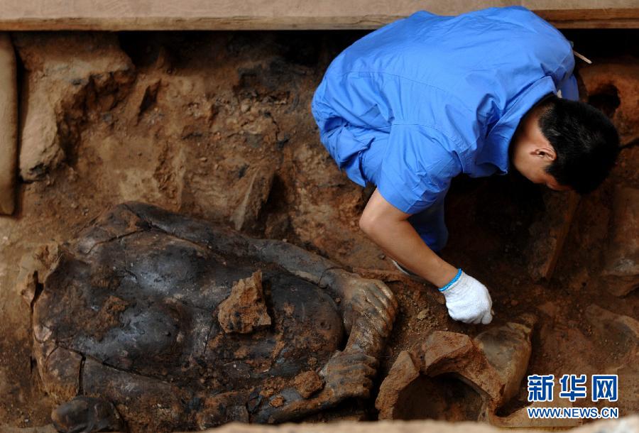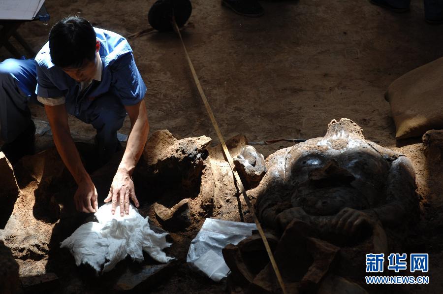 6月9日,考古人员在秦始皇兵马俑博物馆“百戏俑”坑进行发掘。记者6月9日从秦始皇兵马俑博物馆获知,考古人员经过半年多的考古发掘,目前在俗称的“百戏俑”坑内新发现了20余件姿态各异但破损严重的“百戏俑”,为进一步研究秦始皇陵与秦俑的文化、艺术等提供了重要资料。新华社记者 李一博 摄 图片来源:新华网