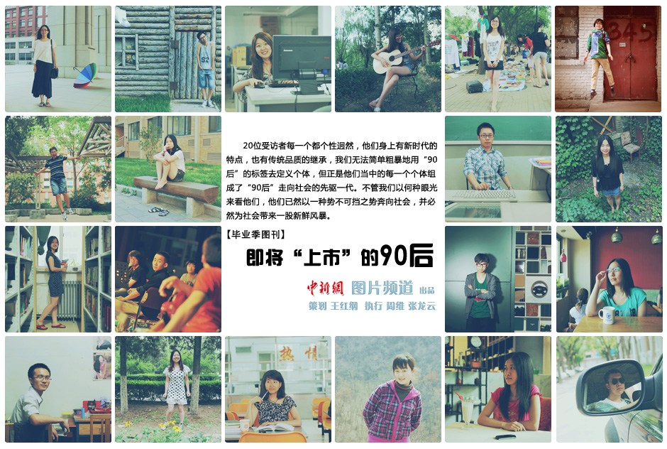 他们活泼、开放,他们独立、自我,他们年轻、稚嫩,他们被社会赋予种种标签。2012年夏天,第一批90年及以后出生的大学生毕业生大规模走向社会。即将“上市”的90后新鲜人,将迎来怎样的目光与待遇,真实的他们是什么样,他们对自己又有何期望?我们通过采访20位90后毕业生,希望得以一窥究竟。图/张龙云 文/周维