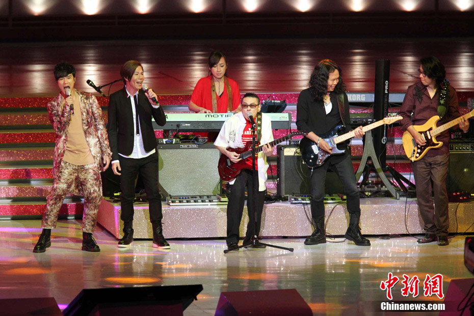 6月30日晚,庆祝香港回归祖国15周年文艺晚会在会展中心举行。图为“太极”乐队倾情演出。中新社发 洪少葵 摄