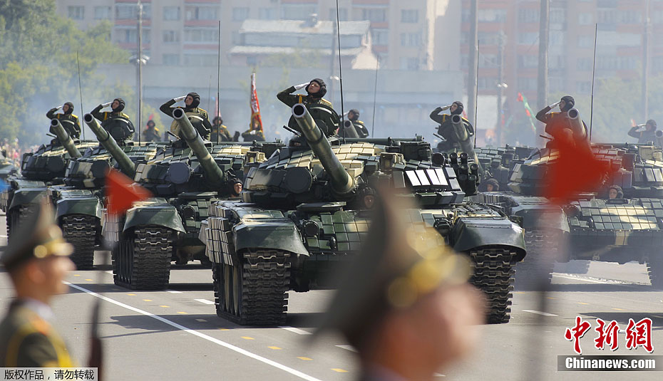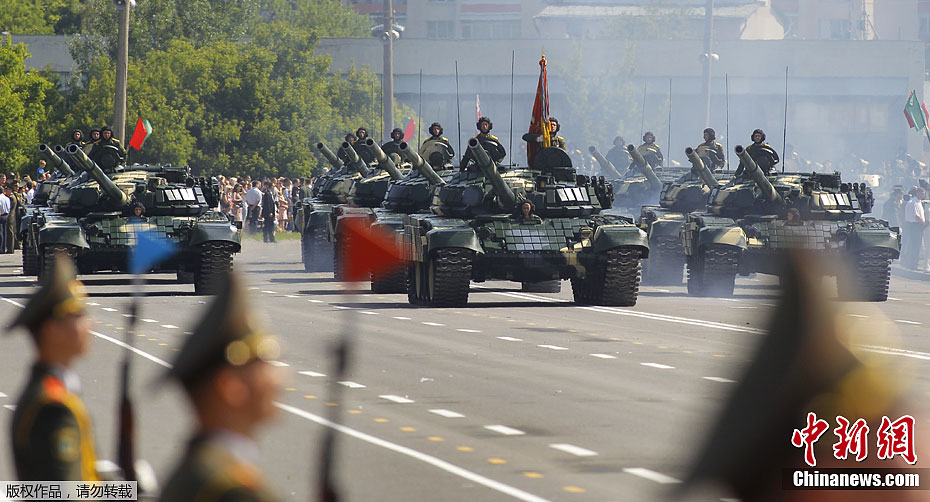 当地时间7月3日,白俄罗斯在首都明斯克举行盛大阅兵式,庆祝独立日暨二战中从法西斯占领下解放68周年。