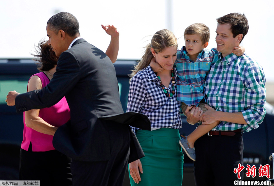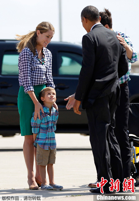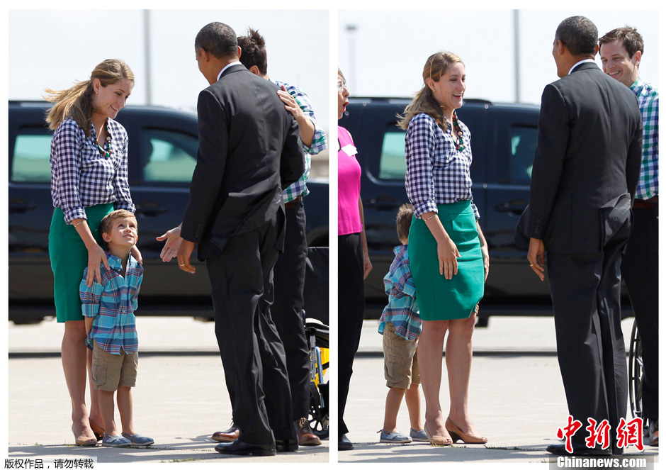 当地时间2012年7月10日,奥巴马抵达爱荷华州西达拉皮兹市(Cedar Rapids),准备为竞选造势。奥巴马在机场受到了当地民众的欢迎,期间,奥巴马试图向一名小男孩示好,由于小男孩的腼腆害羞,遭到了拒绝。