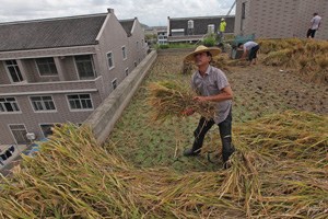 浙江村民屋顶种水稻