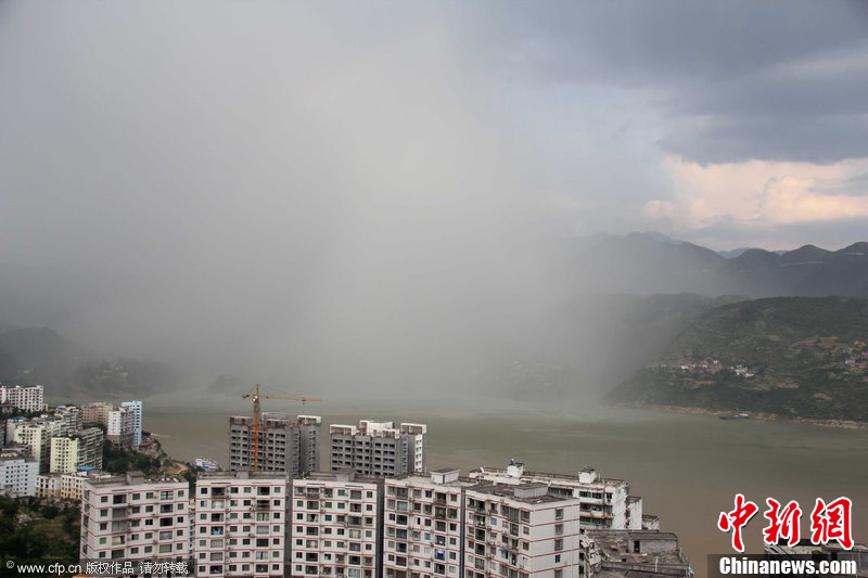 2012年07月31日,重庆巫山县长江与大宁河交汇处,暴雨过江(长江支流大宁河)过程实拍。梁长一 摄 图片来源:CFP视觉中国