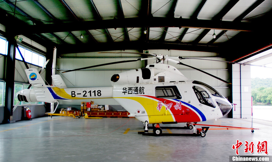 8月6日,记者探访江苏华西村全国首家农村通用航空公司,实拍一应俱全的基建设备。江苏华西通用航空有限公司,于今年7月26日被民航华东局批准正式开航,该公司目前拥有AS350B3和MD902两架直升机,计划在“十二五”期间扩大至5架直升飞机、1架公务机。据了解,江苏华西通用航空有限公司主营“空中看华西、空中看江阴”的旅游业务,进而逐步发展到长三角苏、锡、常地区的空中游览,游客花上1000元,即可享受空中游览华西村。图为侯机厅。李一芳 摄