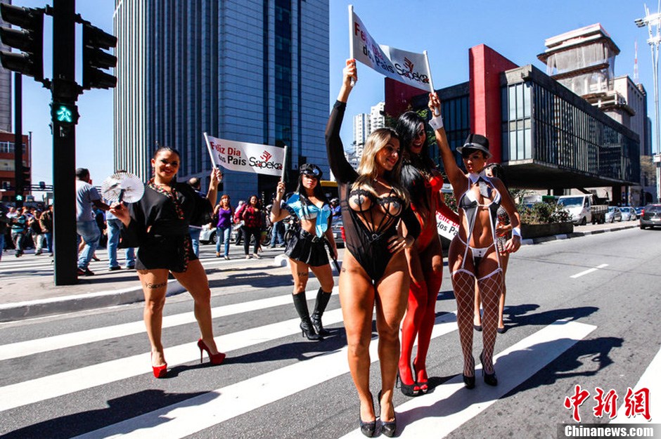 内衣辣模游走巴西街头做促销 惊爆众人眼球