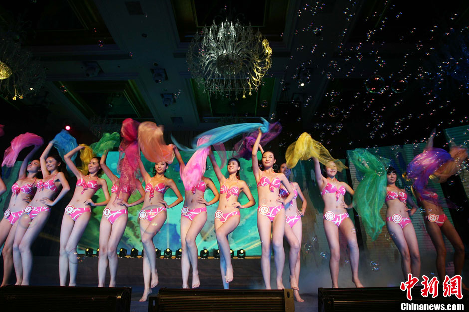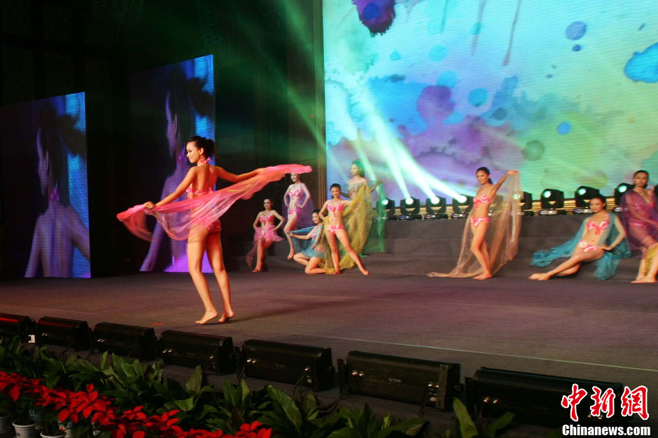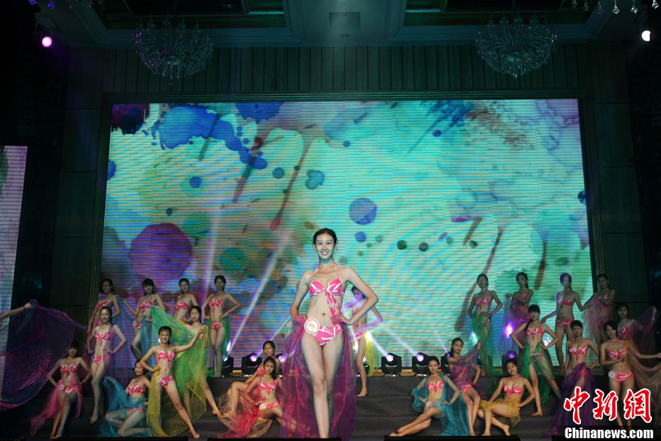 8月13日,2012世界旅游小姐山西年度冠军总决赛在太原举办。通过层层筛选的28位佳丽在经过泳装、民俗服饰、晚装三个环节的角逐后,5号选手刘彦君(中)、11号选手赵夏菲(左)与18号选手温雪分别获得山西赛区的冠、亚、季军。张云 摄