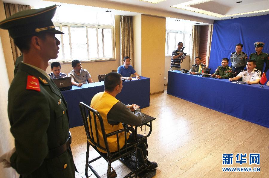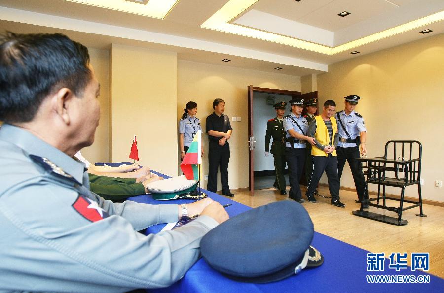 8月22日,以缅甸国防军总司令部军事情报部少数民族武装事务处处长左奈吴中校为组长的军警联合工作组,在昆明提审“金三角”特大武装贩毒集团及“10·5”案件主犯糯康等犯罪嫌疑人,并与中方交流通报“10·5”案件工作进展情况。新华社发(李方宇 摄)图片来源:新华网