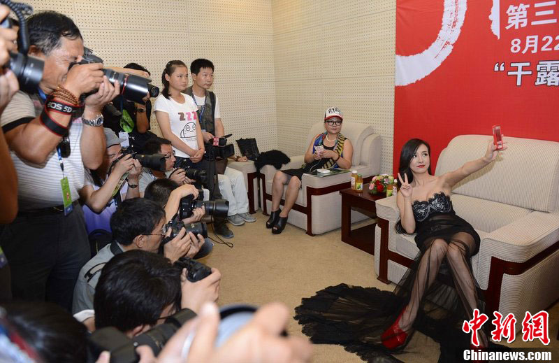 8月22日,2012第三届中国西部(兰州)国际汽车博览会在甘肃国际会展中心开幕。当日,车模干露露与“湿露露”吴稀儿同场PK,二人在活动现场隔空并未同时露面,但二人“性感”的着装还是引爆现场。(拼版照片)