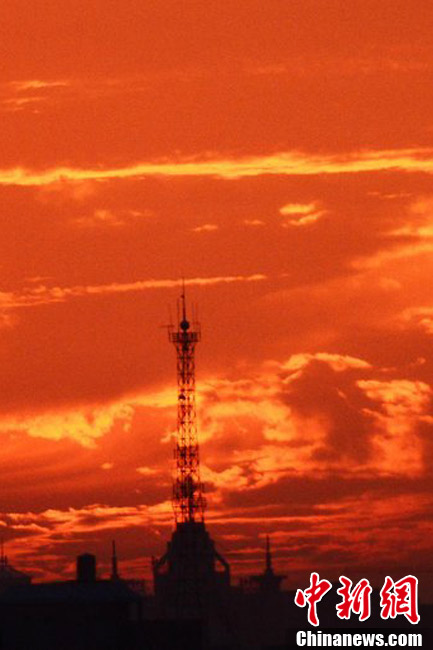 8月23日,农历“七夕”,傍晚7时左右,江城武汉天空出现难得一见的火烧云晚霞。周国强 摄 图片来源:CFP视觉中国