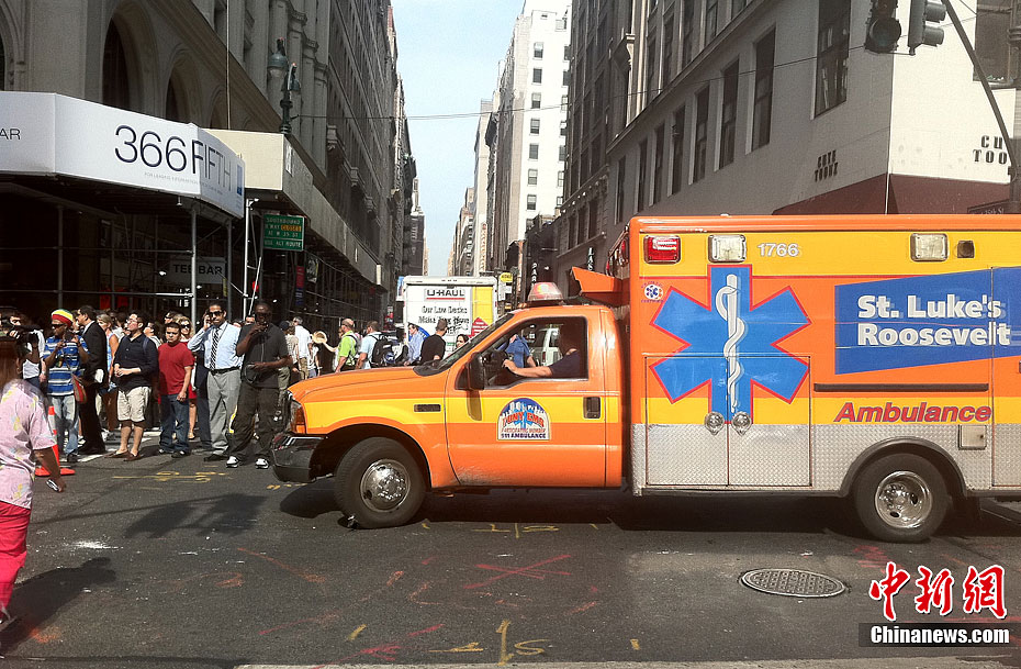 帝国大厦发生枪击案 救护车赶到现场运送伤员