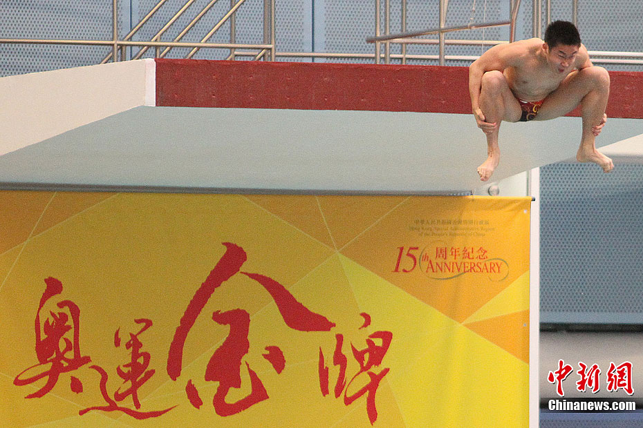 8月25日,国家奥运金牌运动员在香港九龙公园泳池内举行跳水示范表演,搞怪的演出、出色的技艺令人叹为观止。图片来源:Osport全体育图片社