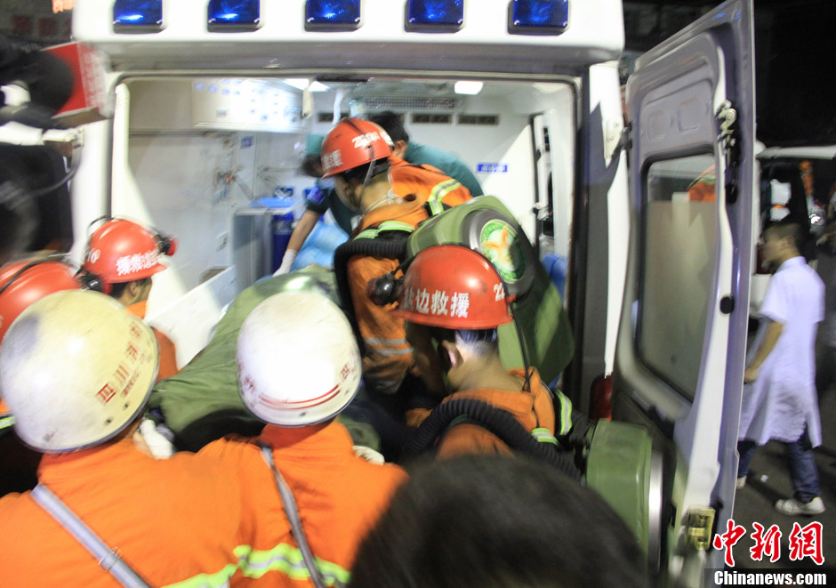 截至8月30日9时,四川攀枝花市肖家湾煤矿瓦斯爆炸事故已造成19人遇难,仍有28人被困井下。事故发生时,井下共有154人作业,到29日19时左右,升井104人,其中3人在送往医院的途中死亡。从29日晚到30日凌晨6时,现场已成功救出6名生还人员,初判遇难者为一氧化碳中毒死亡。目前,从乐山、丽江、凉山等地调集的救援队伍正赶往攀枝花途中。当地政府已启动家属接待和抚慰、遇难人员善后、保险理赔等工作和程序,并成立了事故调查组。图为一名幸存者成功获救。刘忠俊 摄