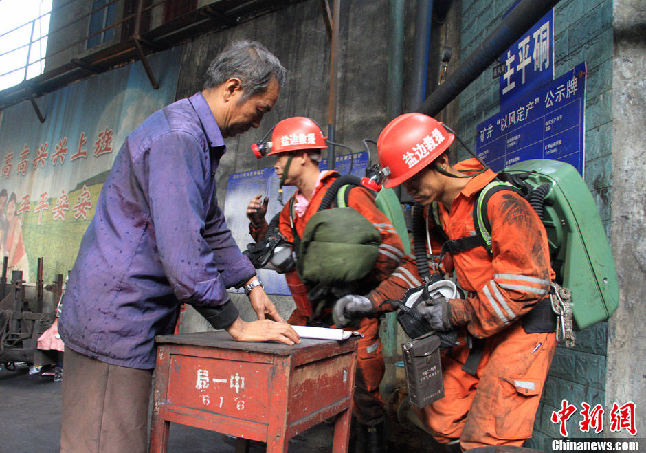 截至8月30日9时,四川攀枝花市肖家湾煤矿瓦斯爆炸事故已造成19人遇难,仍有28人被困井下。图为救援人员正在进行出井登记。刘忠俊 摄