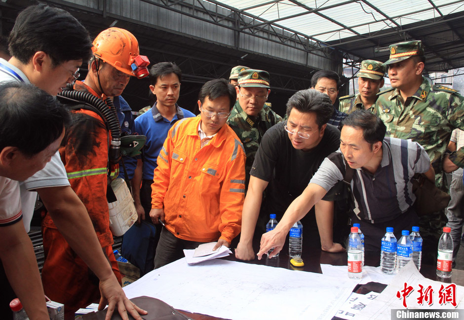 截至8月30日9时,四川攀枝花市肖家湾煤矿瓦斯爆炸事故已造成19人遇难,仍有28人被困井下。图为救援人员正在协商救援方案。刘忠俊 摄