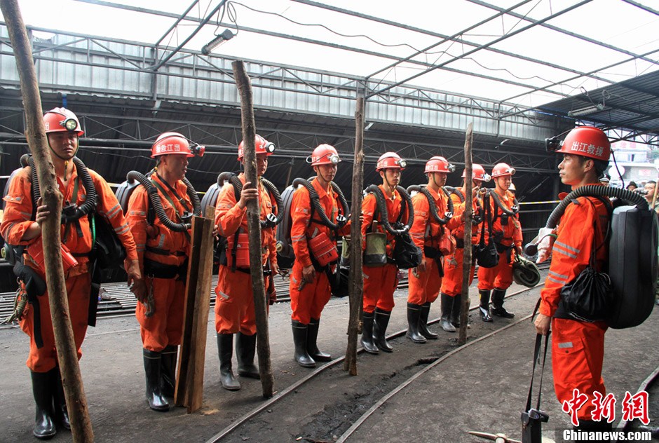 8月31日凌晨,四川攀枝花“8.29”矿难现场搜救还在紧张进行中。图为整队即将下井的矿山救护队。刘忠俊 摄