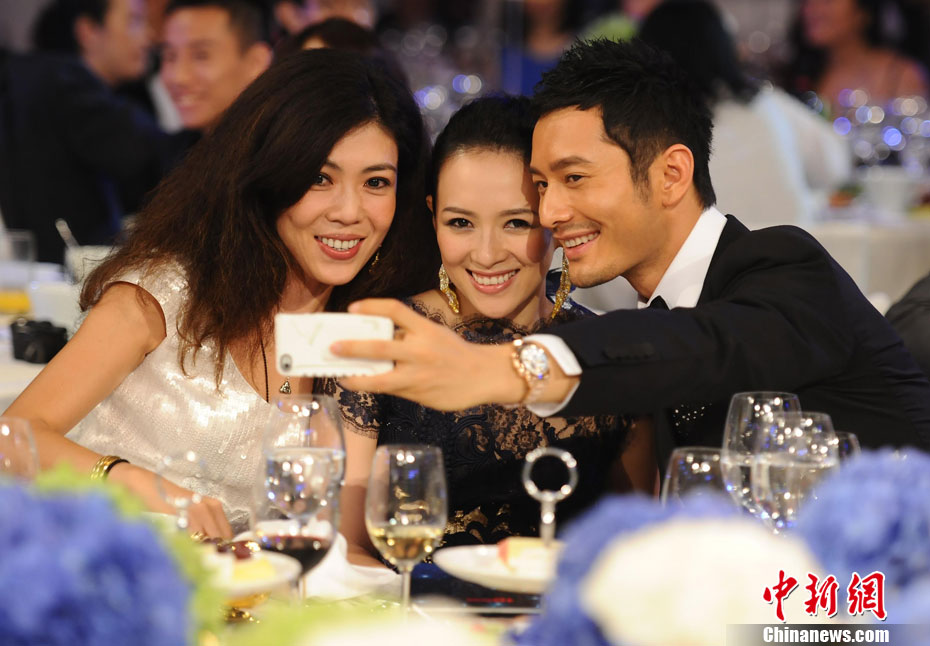 章子怡、黄晓明大玩自拍 2012芭莎慈善夜举行