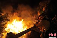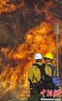 当地时间9月4日,800名消防人员投入洛杉矶圣盖博峡谷,对正在燃烧的森林火灾进行施救。据当地林务局公布的数据显示,这场始于9月2日下午的火灾已烧毁近3700亩森林,目前局部火势得到控制。中新社发 毛建军 摄