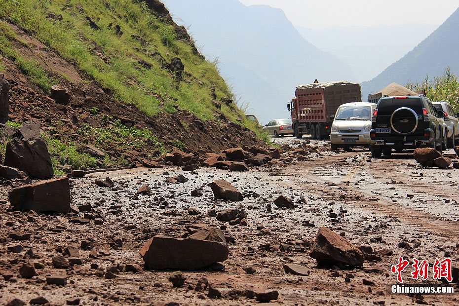 云贵地震灾区24小时——公路被落石阻断
