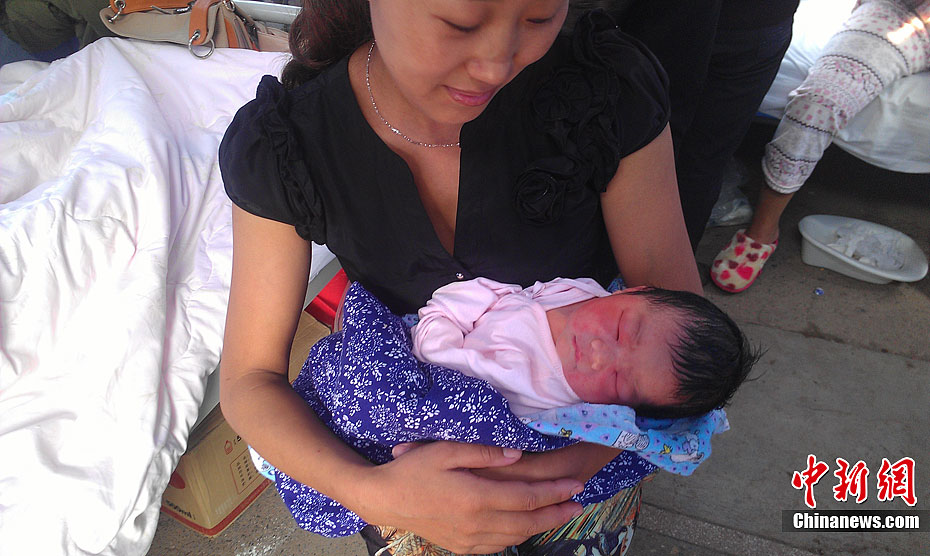 9月8日清晨,云南省彝良县人民医院,这里是此次地震的灾民安置点之一。图为地震前一小时出生的婴儿在熟睡。中新社发 顾一行 摄