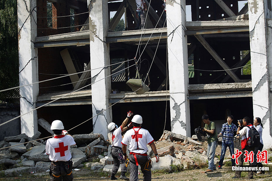 9月8日,中国红十字会在北京举行应急演练。当日是第十三个世界急救日,中国红十字会针对地震、水灾、火灾等常见灾害进行紧急救援、自救互救演练,并启动亚太国家和地区红会合作论坛。中新社发 苏丹 摄
