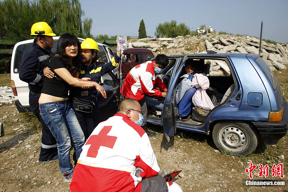 9月8日,中国红十字会在北京举行应急演练。当日是第十三个世界急救日,中国红十字会针对地震、水灾、火灾等常见灾害进行紧急救援、自救互救演练,并启动亚太国家和地区红会合作论坛。中新社发 苏丹 摄