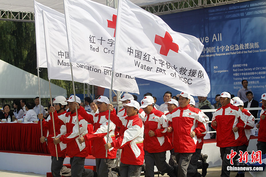 9月8日,中国红十字会在北京举行应急演练。当日是第十三个世界急救日,中国红十字会针对地震、水灾、火灾等常见灾害进行紧急救援、自救互救演练,并启动亚太国家和地区红会合作论坛。中新社发 苏丹 摄