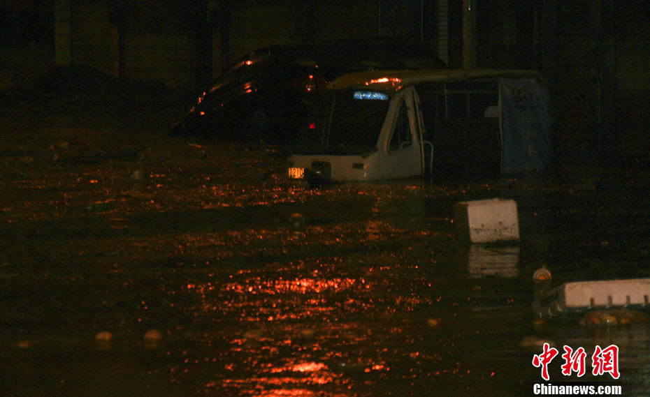 9月11日凌晨,云南彝良地震灾区的降雨增大至暴雨量级,全县发布暴雨红色预警,雨水、山洪不断蔓延至路面。中新社发 陈元云 摄