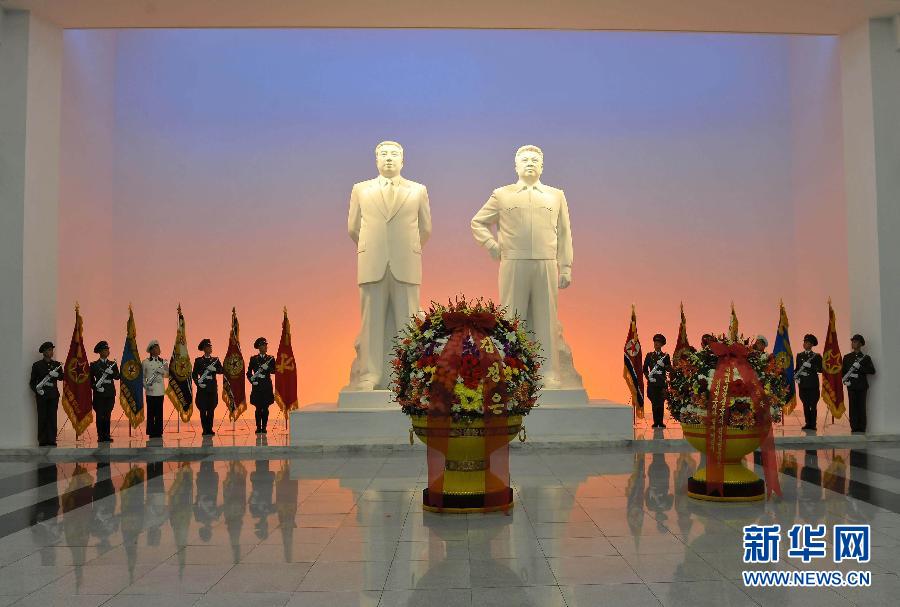 这张朝中社9月10日提供的照片显示的是锦绣山太阳宫内金日成大元帅和金正日大元帅雕像。朝鲜最高领导人金正恩于9月9日0时,率朝鲜劳动党中央军事委员会、朝鲜国防委员会、朝鲜人民军最高司令部作战指挥成员前来锦绣山太阳宫,向金日成大元帅和金正日大元帅致敬。图片来源:新华网