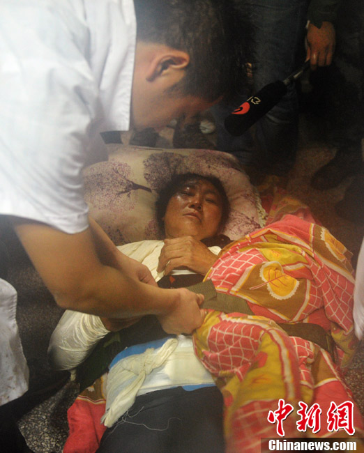 9月11日凌晨,云南彝良震灾区遭遇暴雨泥石流袭击,导致该县角奎镇发达村发生泥石流灾害,村民罗官珍家房屋倒塌被埋,家人将其救出后报警求助。由于伤者头、腰、腿受伤严重,不能乘坐汽车,成都军区驻滇某集团炮兵旅20余官兵冒雨急行军5个小时行30公里,采用肩扛步行方式将伤者安全送抵彝良县人民医院。目前,伤者正在医院救治。图为医院医生正在会诊。刘忠俊 摄