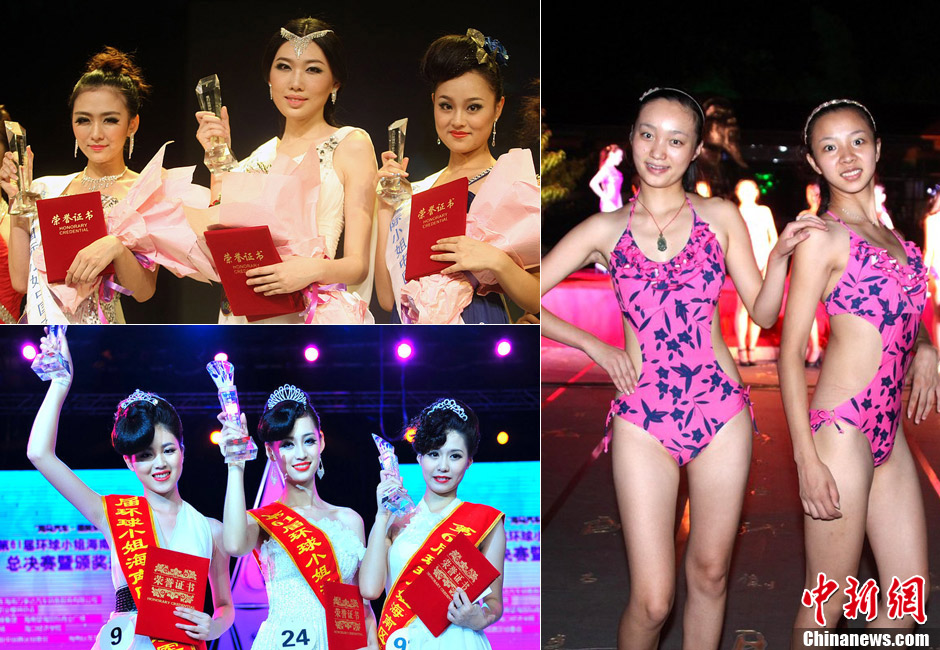 从7月中旬开始,大众的审美观接二连三地遭遇各种选美比赛的极限挑战———先有国际小姐重庆赛区三甲遭网友吐槽,接着海南环球小姐三甲的现身为重庆小姐“解围”,接踵而来令人“拍案惊奇”的还有山东比基尼小姐、福州环球小姐、安徽世界旅游小姐……为什么大大小小的选美选出的佳丽“没有最丑,只有更丑”?左上为国际小姐重庆赛区三甲;左下为海南环球小姐三甲;右为安徽世界旅游小姐。