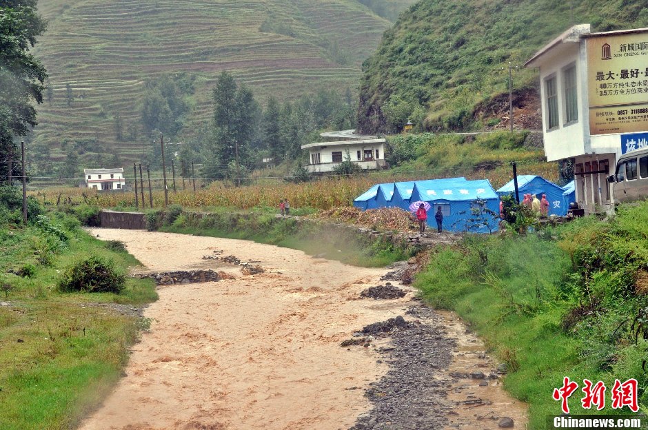 贵州赫章地震受灾民众安置点交通因暴雨中断