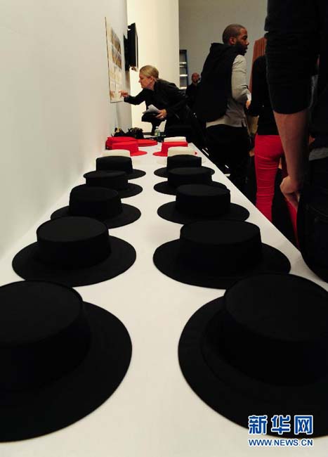 当地时间2012年9月13日,在纽约时装周的拉夫·劳伦秀场后台,为模特准备的帽子摆放得整整齐齐。当日,时装品牌拉夫·劳伦在2013纽约春季时装周上发布新品。本次时装周亦在当天落下帷幕。邓坚 摄 图片来源:新华网