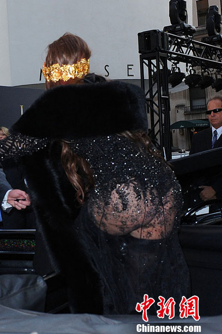 当地时间2012年9月13日,美国纽约,Lady Gaga一身劲爆透视装现身,雷姐再次证明自己的出位大胆绝对是全美乃至全世界第一!身为全民偶像的她真空出街,毫不畏惧镁光灯狂闪,毅然将白皙的屁屁展现在全世界面前,引得在场粉丝一阵惊呼!相比之下,她的刺青美背瞬间逊色。这身“埃及艳后”造型绝对惊艳勾魂,用低调的华丽引发一场“血腥”骚乱。图片来源:东方IC 版权作品 请勿转载