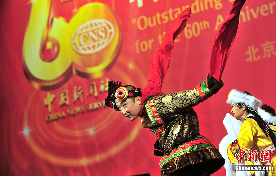 9月14日,中国新闻社举行成立60周年表彰大会。图为中新社员工献舞。中新社发 邹宪 摄