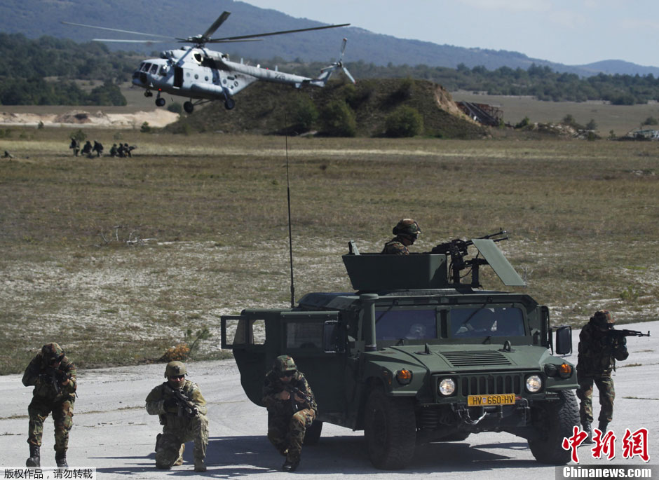 当地时间9月17日,克罗地亚Udbina,欧洲多国特种部队参加在当地进行的代号为“Jackal Stone 12”的军事演习。据悉,这是在欧洲多国间进行的最大规模的军演,力图扩大参与国家军队之间的合作和加强区域安全与稳定。