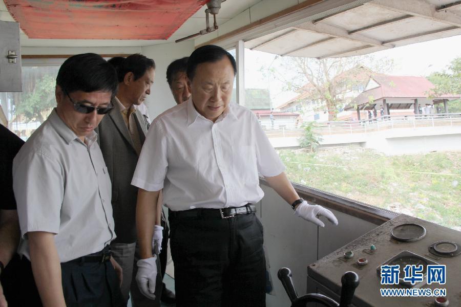 资料图片:10月26日,在泰国清盛县,中国公安部副部长张新枫(右)在“玉兴8号”货船上查看案发现场。当天上午,中国公安代表团来到泰国北部清莱府清盛县,实地查看了“10·5”湄公河中国船员遇袭事件案发现场。 黎藜 摄