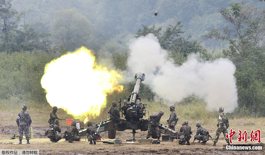 当地时间9月21日,韩国陆军在坡州地区举行实弹射击训练。图为训练现场。