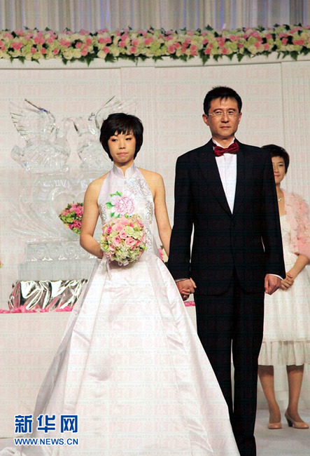 2009年10月18日,张怡宁和徐威在东方新天地君悦酒店举行隆重婚礼,嘉宾阵容极度豪华,蔡振华、李宁,邓亚萍、王楠、刘璇、申雪、赵宏博、徐寅生、陆元盛等等体育界大腕齐聚一堂,让张怡宁倍有面子。 图片来源:新华网