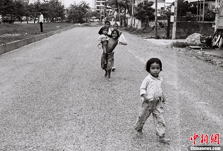 2012年9月,柬埔寨吴哥。在这里总能见到一些光脚奔跑的孩子,稍大些的带着小的。生活的窘迫和教育条件的落后让这里的一些孩子不得不放弃上学,就在吴哥景区叫卖小商品来补贴家用。他们穿梭在吴哥大小景点的残垣断壁间,等待着游人的糖果。中新网记者 林沛青 摄