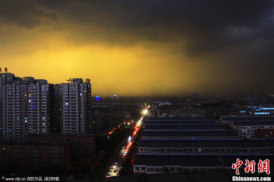 9月27日18时左右,一场大雨在狂风的伴随下突袭山东德州,乌云压城狂如世界末日,降雨带来了近6度的降温。周建新 摄 图片来源:CFP视觉中国