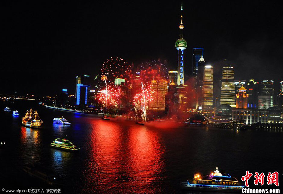 上海黄浦江彩船大巡游 焰火彩灯迎佳节