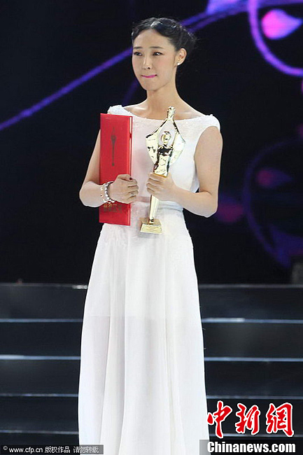 9月29日,第21届金鸡百花电影颁奖典礼在浙江绍兴举行,文章和白百合凭借《失恋33天》分获影帝和影后,冯小刚则因为《唐山大地震》获得最佳导演。图为白百合凭借《失恋33天》获得影后。图片来源:CFP视觉中国